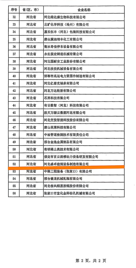 10月20日,第七批国家专精特新“小巨人”企业榜单发布,河北盛卓集团旗下的河北盛卓建筑设备制造有限公司名列其中。